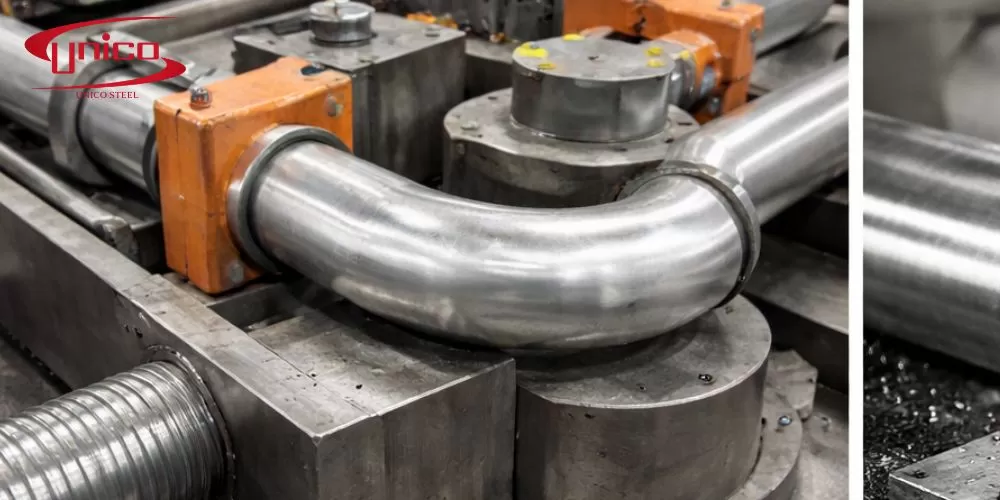 Cận bề mặt ống inox 304 trong xưởng gia công của UnicoSteel I inoxdacbiet